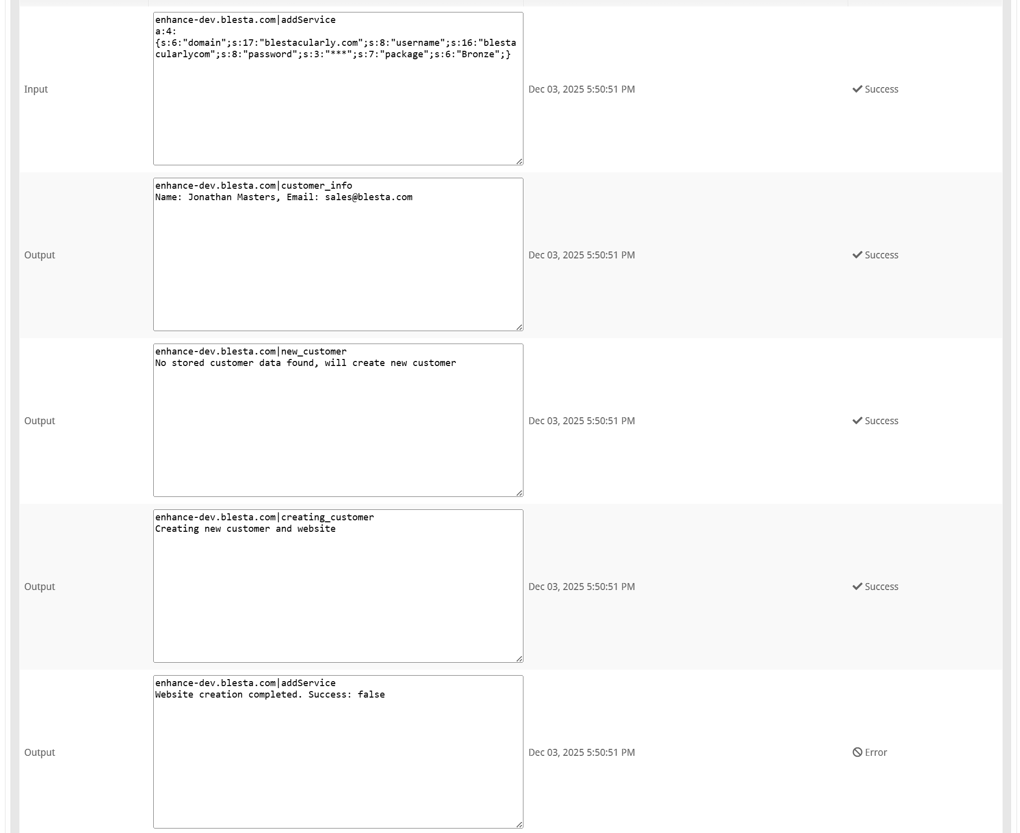 When adding an Enhance service as an admin (I think the same would occur via cron activated orders) the error: Failed to create customer login is returned.
